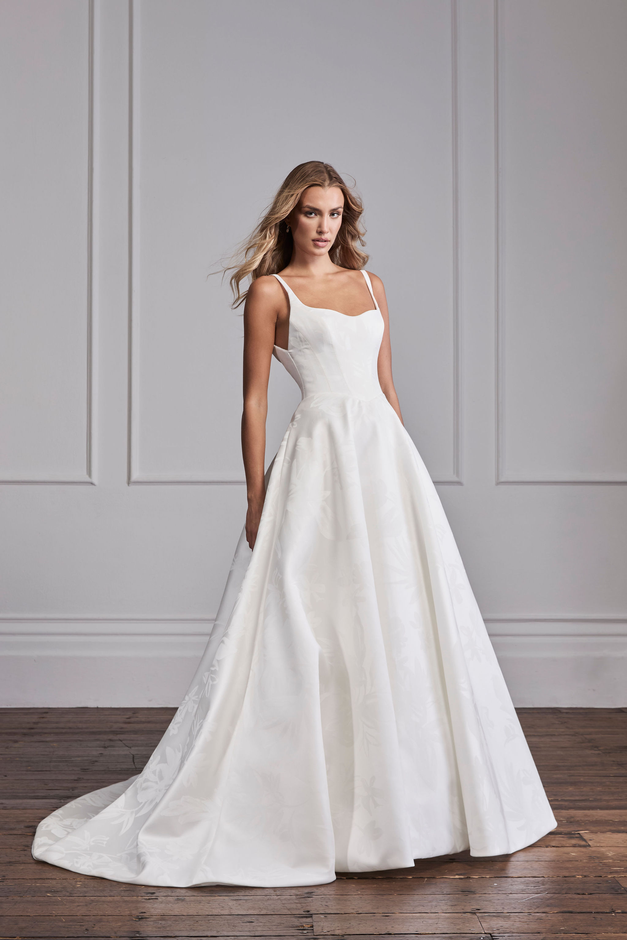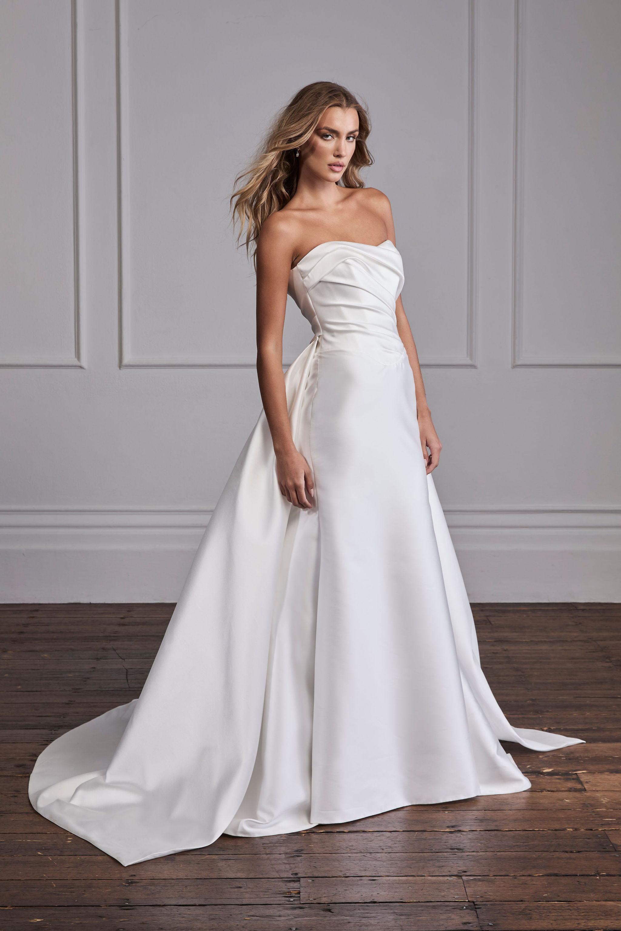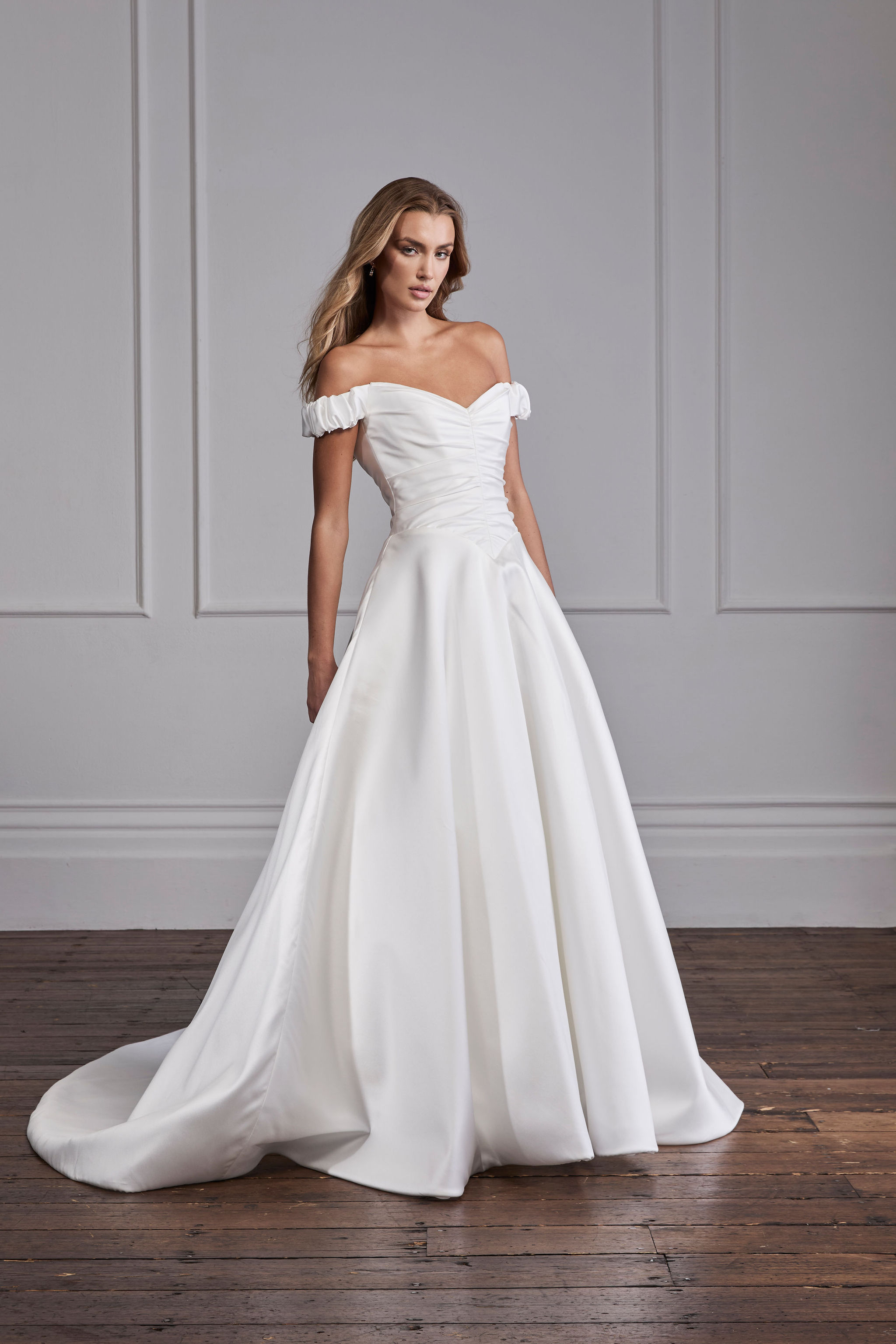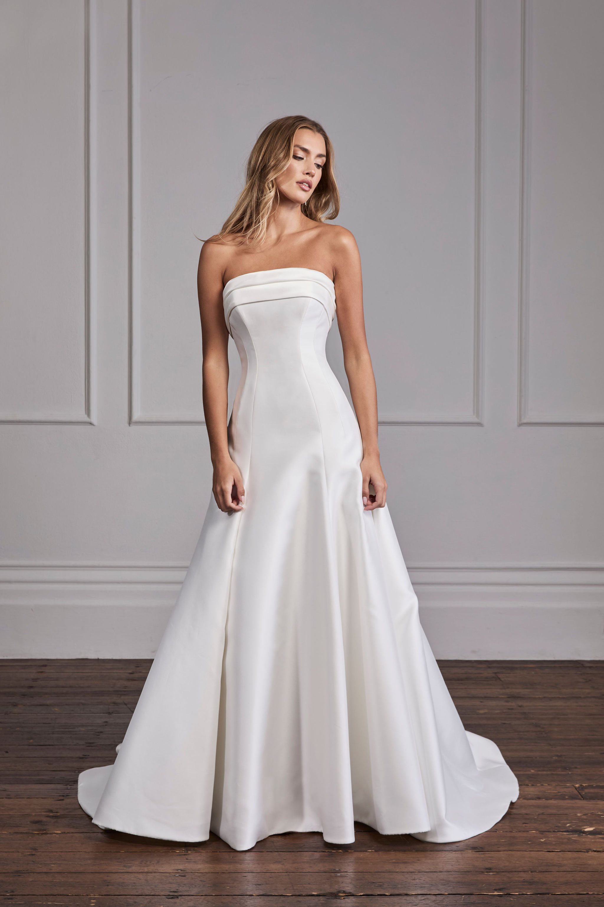 Renowned for beautifully constructed wedding dresses with signature-structured bodices, the collection is incredibly diverse. Silhouettes vary from slim fitting bias cuts to full and romantic gowns, always using only the finest silks and hand embroideries.