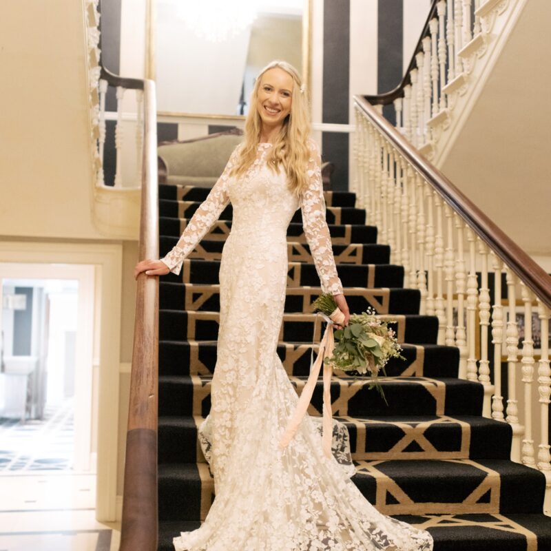 Ciara wore ‘Lottie’ by Stephanie Allin. A beautiful floral lace long sleeve fitted dress with a blush undertone. Its a real statement one of a kind dress. dream